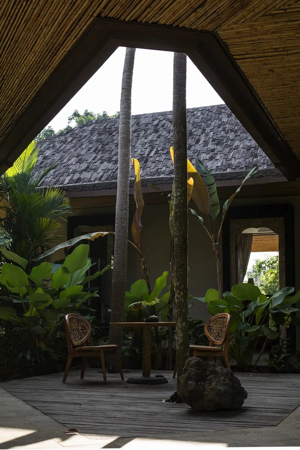 A project commissioned by Yayasan Bali Purnati Foundation to support its residency program and initiatives for the performing arts. The architecture integrates seamlessly into the landscape through the use of local materials such as bamboo, volcanic stone, and salvaged wood. Interiors, custom-made in close collaboration with local artisans, are rooted in performance and ritual. The space welcomes artists and travelers into the rhythm of Balinese time, where tradition and modernity engage in quiet conversation.